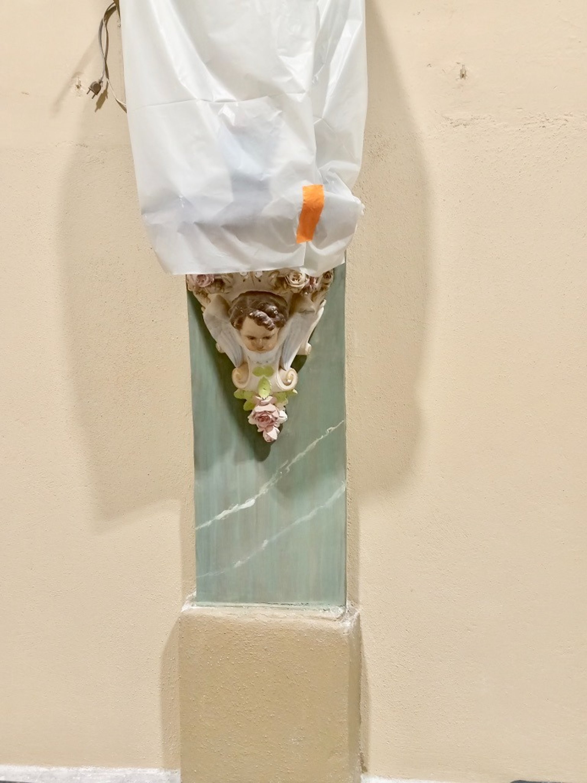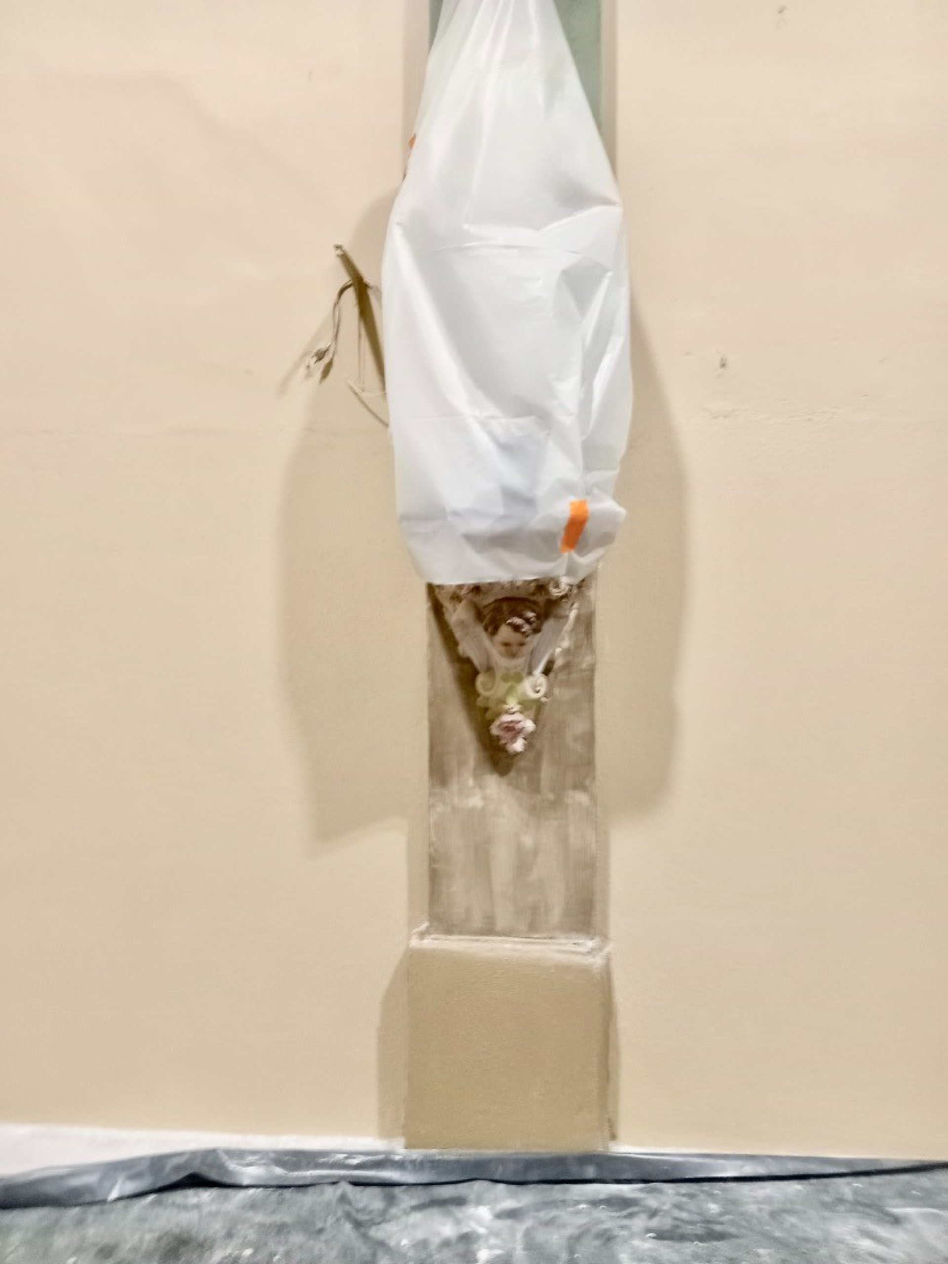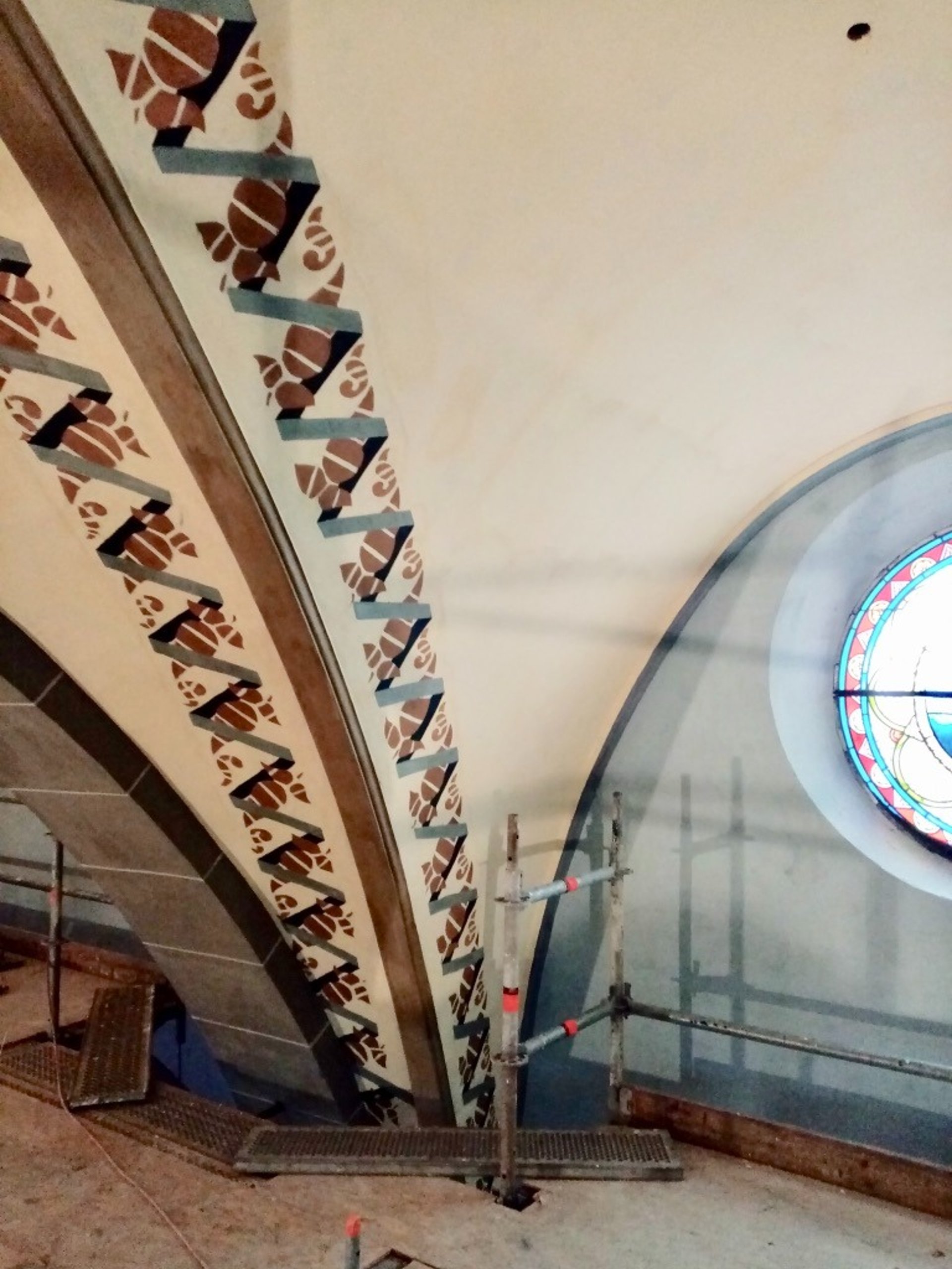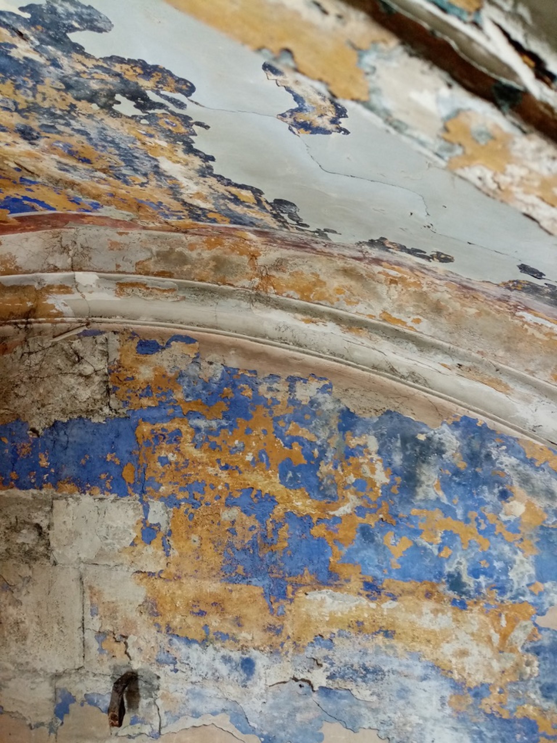Dégagement de badigeons chaux ou nettoyage des décors avant restauration de peintures et pochoirs.